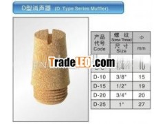 D Type Series auto Muffler, made by Bronze Powder, and has threadsize from G1/8" to G1", Normally used as filter or silencer .D Type Series auto Muffler